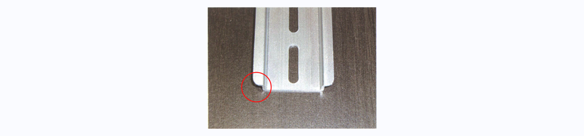 レールの角がとがっていたり、バリ処理がされていないと、レールの取り付け時に電線や部品にキズをつける恐れがあります。