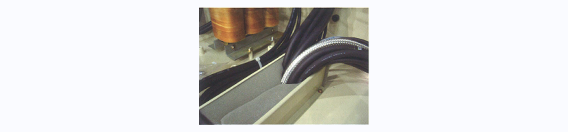スポンジを使用してケーブルを固定することで、メンテナンス性を向上させる。