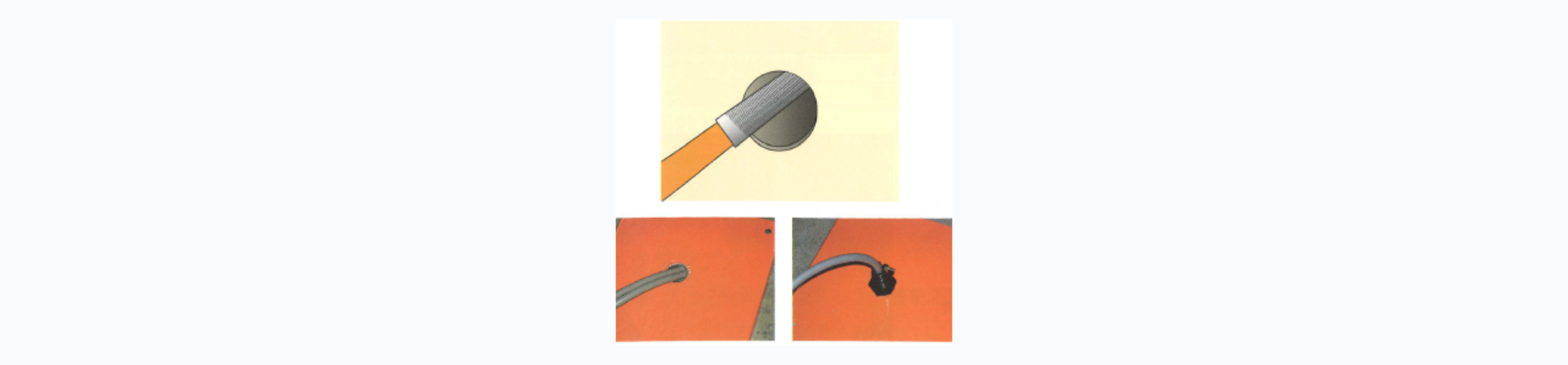 また、その前工程として切断面にはヤスリがけを施し、バリ取り・面取りを行うことで、ケーブルを保護します。