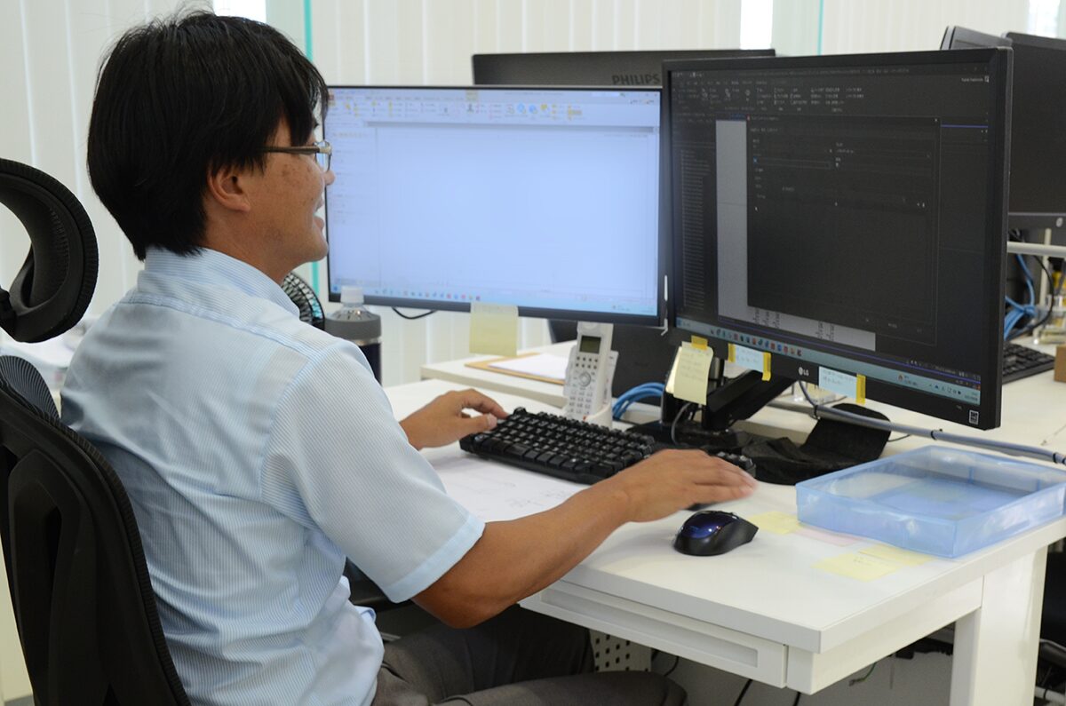 Y.M:確かに三笠の設計分野は装置の一部である制御盤に特化してはいるものの、最初から最後まで全部ひとりで手がけることが多いんです。